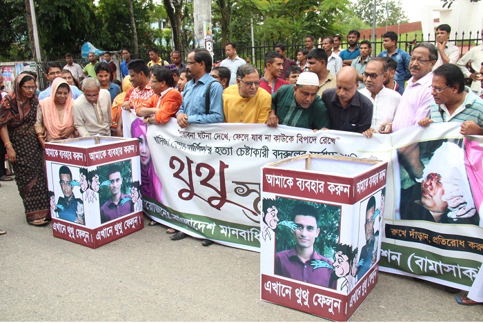 মঙ্গলবার সকাল থেকে দুপুর পর্যন্ত সমাজের সর্বস্তরের লোকজন প্রতীকী ডাস্টবিনে থুথু ফেলে বদরুলের অপকর্মের ধিক্কার জানান।