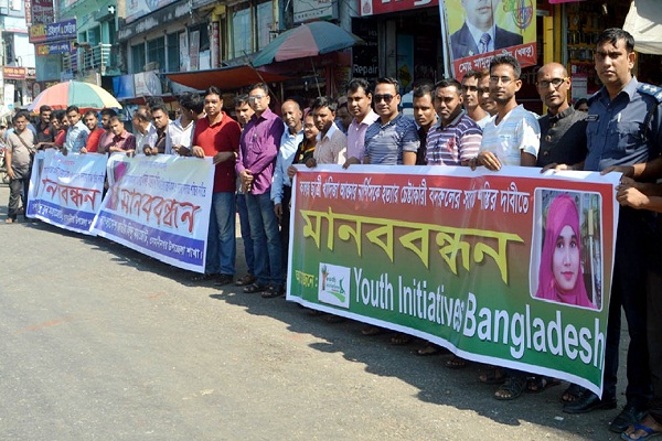 ইয়ুথ ইনিশিয়েটিভস বাংলাদেশ এর উদ্যোগে শনিবার (২২ অক্টোবর) দুপুরে উপজেলার গোয়ালাবাজারে সিলেট-ঢাকা মহাসড়কে এ মানববন্ধন অনুষ্ঠিত হয়।