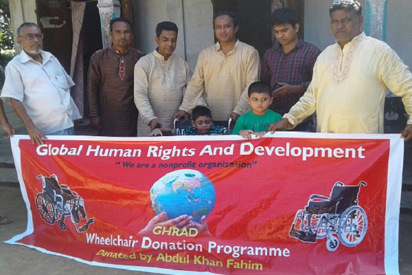 মৌলভীবাজারের জুড়ীতে ‘গ্লোবাল হিউম্যান রাইটস্ এন্ড ডেভেলপমেন্ট’ আমেরিকা ইউনিটের সভাপতি আব্দুল খান ফাহিমের (ফুরকান) নিজস্ব অর্থায়নে উপজেলার মাগুরা গ্রামের খায়রুল আলম নামের এক শারীরিক প্রতিবন্ধী শিশুকে একটি হুইল চেয়ার প্রদান করা হয়েছে।