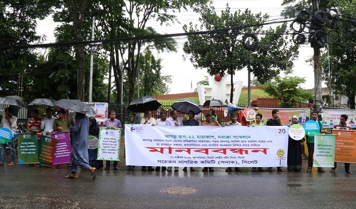 জলবায়ু তহবিল সংগ্রহ এবং তা ব্যবহারে স্বচ্ছতা, জবাবদিহিতা এবং নাগরিক অংশগ্রহণ নিশ্চিত করার দাবিতে সনাক সিলেটের এর উদ্যোগে ‘মানববন্ধন’ অনুষ্ঠিত হয়েছে।