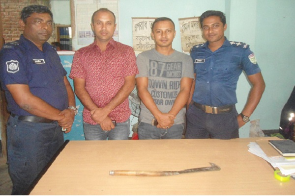 উদ্ধারকৃত দা সহ চার পুলিশ সদস্য