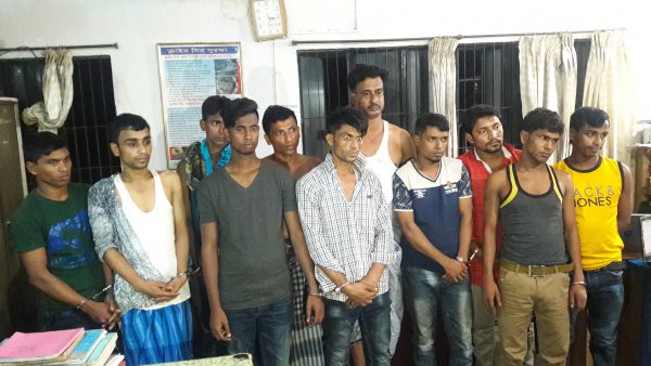 আটককৃতরা হলেন- ফেনীর সোনাগাজীর নদোনার আবুল কালাম আজাদের ছেলে আব্দুল্লাহ আল মামুন (২৮), চট্টগ্রামের বাখালিয়ার পূর্ব বাকালিয়ার ইউসুফ সদাগরের ছেলে ওসমানী গনি (৪০), গাজীপুরের জয়দেবপুরের কালাবাগানের মৃত করিম সর্দারের ছেলে জুয়েল সর্দার রাসেল (২৫), কুমিল্লার মুরাদনগরের পাহাড়পুরের মৃত সিদ্দীকের ছেলে মো. জাবেদ (২৮), একই উপজেলার থোল্লা গ্রামের মৃত আব্দুল হাকিমের ছেলে মো. শামীম (২২), বান্ডলপুর গ্রামের আব্দুল লতিফের ছেলে মো. মোশারফ হোসেন (২৬), করিমপুরের মোহাম্মদ হুসেনের ছেলে মো. সুলতান (২১), রামচন্দ্রপুর গ্রামের আব্দুল লতিফের ছেলে মো. শরিফুল ইসলাম (২০), পূর্ব ঘোড়াশালের মৃত কবির আহম্মেদের ছেলে মো. সিরাজ (২২), একই জেলার বাঙ্গারা বাজার উপজেলার হিরাকাশির মো. হারুনের ছেলে মো. কামরুল (২২) এবং ব্রা²ণবাড়ীয়ার বাঞ্ছারামপুরের আলগাবাড়ির মৃত নায়েব আলীর ছেলে মো. আলম (৩০)।