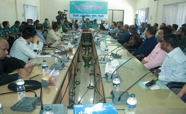 বুধবার (১৬ নভেম্বর)দুপুরে সিলেট মেট্রোপলিটন পুলিশের (এসএমপি) কার্যালয়ে এক মতবিনিময় সভায় এ তথ্য জানানো হয়। সভায় র্যাব, বিজিবি, পুলিশ, ব্যবসায়ীসহ বিভিন্ন শ্রেণি-পেশা ও সরকারি-বেসরকারি দফতরের কর্মকর্তারা উপস্থিত ছিলেন।