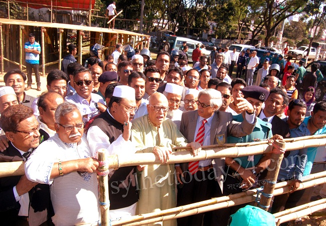 জনসভাস্থল পরিদর্শন করছেন অর্থমন্ত্রী আবুল মাল আব্দুল মুহিত