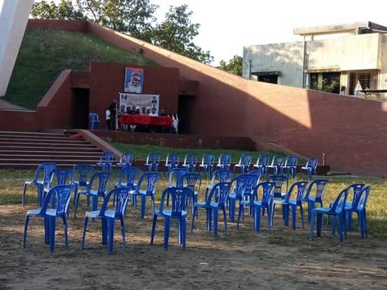 আলোচনা সভাস্থল শহীদ মিনার চত্বরে গিয়ে দেখা যায়, মঞ্চের মধ্যে নয়টি চেয়ার রাখা রয়েছে। মঞ্চে আছেন সাত অতিথি। আর মঞ্চের সামনে রাখা চেয়ার রাখা থাকলেও সেগুলো একেবারেই ফাঁকা। অনুষ্ঠানের শেষ পর্যন্তই ফাঁকা ছিলো চেয়ারগুলো।