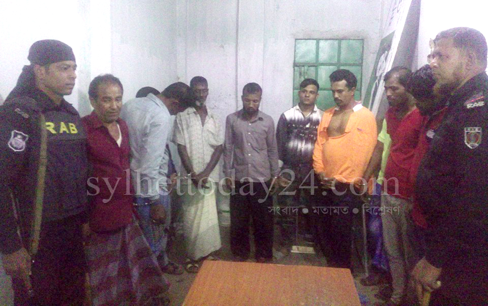 আটককৃতরা হলেন, সিলেট সদর উপজেলার কাজীরগাওঁয়ের ফয়জুর রহমানের পুত্র মন্জু মিয়া (৩৭), দক্ষিণ সুরমার পাঠানপাড়ার গেদন মিয়ার পুত্র শুভ (২০), জৈন্তাপুরের হেলিরামের জুয়েল আহমদ (২০), শিবগঞ্জ লামাপাড়ার মকবুল হোসেন মখা মিয়ার পুত্র রনি (২০), হবিগঞ্জের বানিয়াচং উপজেলার নবিগন্জের মো. শাহীন, নগরীর কলাপাড়ার জামাল হোসেনের পুত্র নুরুল ইসলাম (২৫), কাজীর বাজারের আব্দুর রশীদ মিয়ার পুত্র সুমন (২৮), কাজীর বাজারের জীবন মিয়ার পুত্র রুবেল (২৩), ঘাশিটুলার নাজির মিয়ার পুত্র রিপন (৩৫), কাজিরবাজারের আজগর আলীর পুত্র মো.রকি (১৮), টুকেরবাজারের জাঙ্গাইলের আজাদ আলীর পুত্র মনসুর আহমেদ (৩০), দোয়ারাবাজার উপজেলার উরুরগাওঁয়ের মৃত নোয়াব আলীর পুত্র মো.আলী (৫০), কাজীর বাজারের হারিছ আলীর পুত্র দুলাল আহমদ (৫০), মাসুকবাজারের পূর্ব দর্শানোর গ্রামের আমির উল্লাহর পুত্র আব্দুল হান্নান (৫০), হেতিমগন্জের মানিক মিয়ার পুত্র আতিক মিয়া (২৬) ও লামাকাজির বাবুল মিয়ার পুত্র মাসুম মিয়া (১৮)।