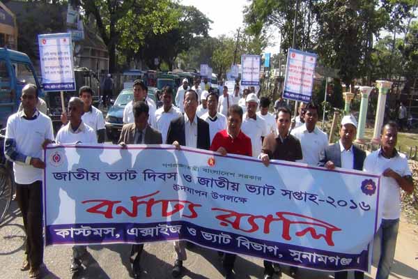 “উন্নয়নের অক্সিজেন রাজস্ব, জনকল্যাণে রাজস্ব” এই স্লোগানে সুনামগঞ্জে জাতীয় ভ্যাট দিবস ও জাতীয় ভ্যাট সপ্তাহ ২০১৬ উপলক্ষ্যে র্যালী অনুষ্ঠিত হয়েছে।