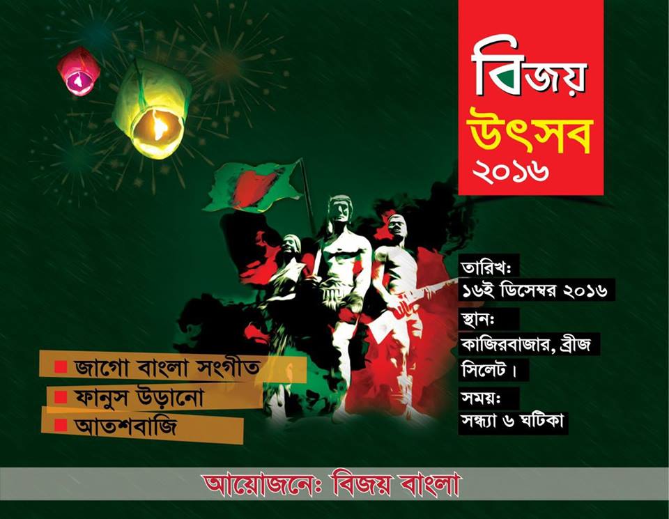 এই আয়োজনের জন্য ফেসবুকে খোলা 'বিজয় উৎসব উদযাপন ২০১৬' নামের ইভেন্ট সূত্রে এসব তথ্য জানা গেছে। এই আয়োজন সফল করার লক্ষ্যে প্রসক্লাবে সংবাদ সম্মেলনও করেছেন আয়োজকরা। এসময় জানানো হয় বিজয়ের ৪৫ বছর উদযান করতে প্রথমবারের মতো এই ব্যতিক্রমী উদ্যোগ নেওয়া হয়েছে।