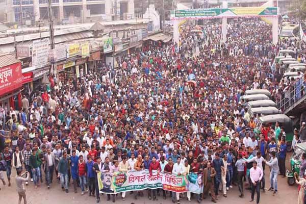 রোববার দুপুরে আয়োজিত তাদের আনন্দ মিছিলটি তেলিহাওর এলাকা থেকে শুরু হয়ে নগরীর বিভিন্ন গুরুত্বপুর্ন সড়ক প্রদক্ষিণ করে পুনরায় তেলিহাওরে গিয়ে শেষ হয়।
