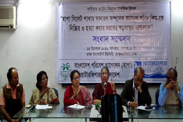 মুল বক্তব্যে ড. মো. আব্দুল মতিন বলেন, “আমাদের দেশে পরিবেশ আন্দোলন ক্রমান্বয়ে কঠিন হয়ে যাচ্ছে। মনে হয়, আন্দোলনের আন্তরিক সংগঠকদের চাপে রেখে নিষ্ক্রিয় করার চেষ্টা চলছে। এরই ধারাবাহিকতায় সম্প্রতি বাপা সিলেট শাখার সাধারণ সম্পাদক ‘আব্দুল করিম কিম’ ভয়াবহ এক সাইবার অপরাধের শিকার হয়েছেন। যাতে তার নিজের ও পরিবারের জীবননাশের আশংকা দেখা দিয়েছে। অত্যন্ত দুঃখের সাথে জানাচ্ছি যে, ১৪ই ডিসেম্বর মধ্যরাতে কয়েক গাড়ি সশস্ত্র পুলিশ জনাব কিমকে অগ্রহণযোগ্য ভাবে জিজ্ঞাসাবাদ করার নামে সিলেট কোতয়ালী থানায় নিয়ে যায় এবং ফেইসবুকে ধর্ম অবমাননাকর একটি মন্তব্য নিয়ে জিজ্ঞাসাবাদ ও প্রাথমিক তদন্ত শুরু করে। তাঁকে নিয়ে যাওয়ার চৌদ্দ ঘণ্টা পর এ বিষয়ে তাঁর সংশ্লিষ্টতা না পেয়ে তাকে ছেড়ে দেয়া হয়। এ কারণে আমরা বাংলাদেশের পুলিশ বিভাগকে আমাদের পক্ষ থেকে ধন্যবাদ জানাচ্ছি।