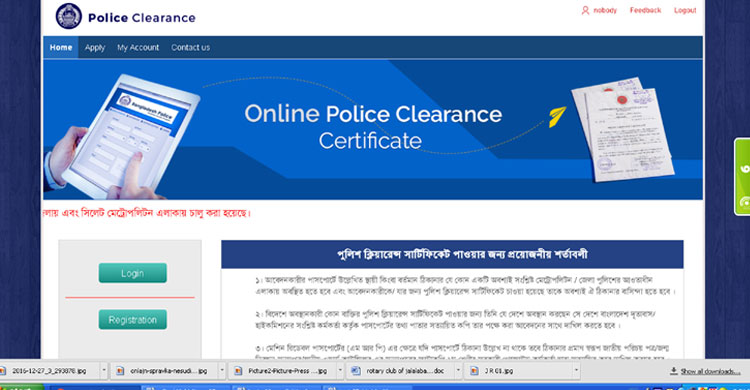 বিভিন্ন কাজে পুলিশ ক্লিয়ারেন্স সার্টিফিকেট দ্রুত প্রাপ্তিতে ‘অনলাইন পুলিশ ক্লিয়ারেন্স সার্টিফিকেট’ সেবাটি অনলাইনে চালু করেছে সিলেট মহানগর পুলিশ (এসএমপি)।
