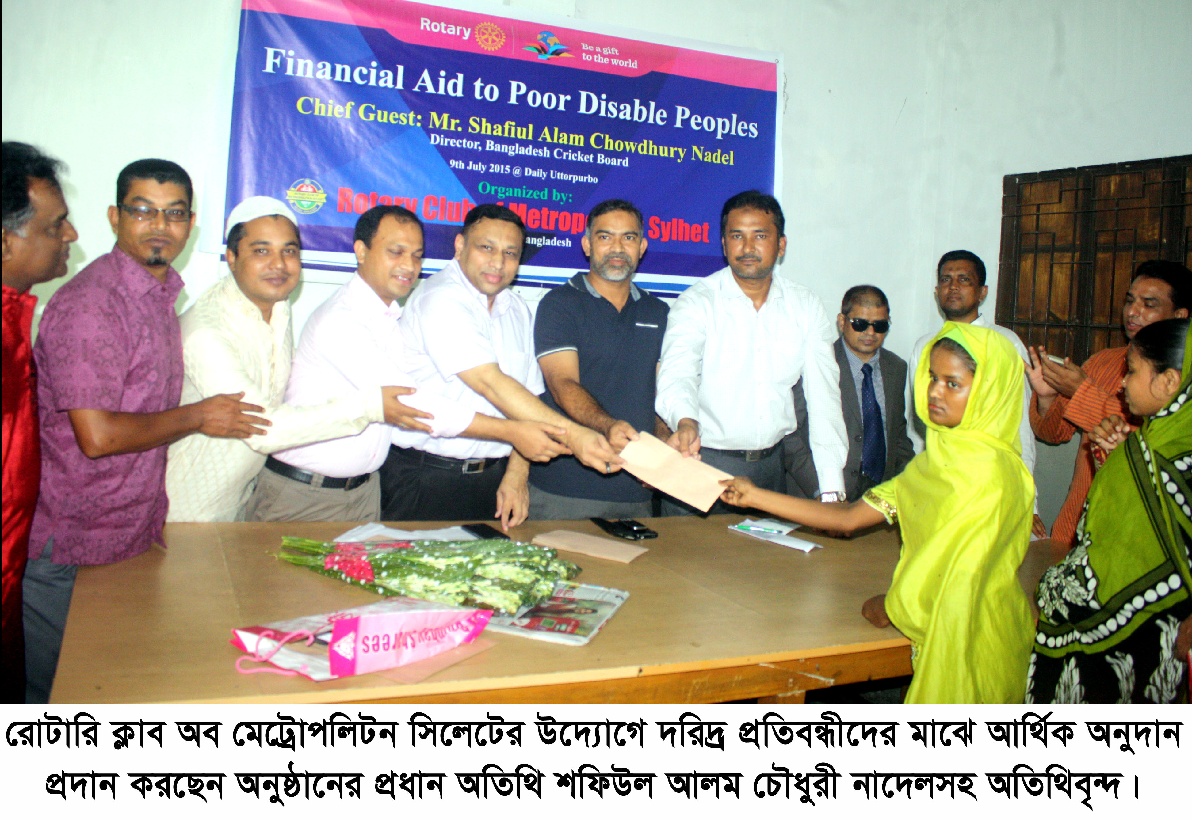 রোটারি ক্লাব অব মেট্রোপলিটন সিলেটের উদ্যোগে আজ বৃহস্পতিবার (৯ জুন) নগরীর কাজী ইলিয়াসস্থ দৈনিক উত্তরপূর্ব পত্রিকার হলরুমে প্রতিবন্ধী দরিদ্র ও অসহায়দের মধ্যে আর্থিক অনুদান প্রদান করা হয়েছে।