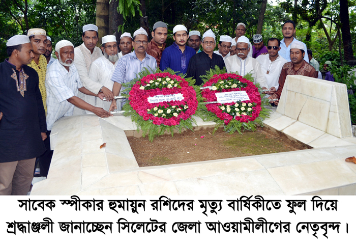 সাবেক স্পিকার হুমায়ুন রশীদের মৃত্যুবাষির্কীতে মরহুমের মাজারে ফুল দিয়ে শ্রদ্ধা জানিয়েছেন সিলেট জেলা আওয়ামী লীগের নেতাকর্মীরা। শুক্রবার বাদ জুমা শাহজালাল মাজারস্থ কবরস্থানে মরহুমের মাজারে ফুল দেন নেতাকর্মীরা।
