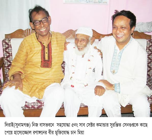 সুরঞ্জিত সেনগুপ্ত এসময় মুক্তিযুদ্ধকালীন স্মৃতিচারন করতে গিয়ে বলেন,৭১’এর মুক্তিযুদ্ধে আমি ৫নং সাব-সেক্টর কমান্ডার ছিলাম, ভাটি অ লে যে কয়জন মুক্তিযোদ্ধা ছিলেন তার মধ্যে অন্যতম ছিলেন চাঁন মিয়া। চাঁন মিয়া শুধু মুক্তিযোদ্ধা ছিলেন না, তিনি ছিলেন সরাসরি অপারেশন পরিচালনায় যুক্ত।রাজনৈতিক চিন্তাধারায় তিনি পরিচ্ছন্ন ও অসাম্প্রদায়িক।যুদ্ধের পর তার ঘরবাড়ি আগুন দিয়ে জ্বালানো হয়েছে তারপরও প্রগতির পথ থেকে তাকে বিচ্যুত করতে পারে নাই। চান মিয়া পাকিস্তানের কেন্দ্রীয় সরকারের অধীনে পোষ্টমাষ্টার হিসেবে চাকুুরী করে,এরপর আমার সাথে তিনি বাম রাজনীতি যুক্ত হয়,পরবর্তিতে সরাসরি মুক্তিযুদ্ধে অংশ নেন।