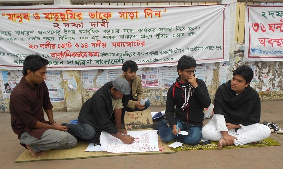 অনশনকারীরা জানান, অবিলম্বে সাধারন জনগনের উপর চলমান অত্যাচার বন্ধে