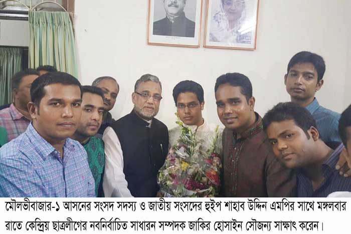 মৌলভীবাজার-১ (বড়লেখা ও জুড়ী) আসনের সংসদ সদস্য ও জাতীয় সংসদের সরকার দলীয় হুইপ মো: শাহাব উদ্দিন এমপির সাথে মঙ্গলবার রাতে সৌজন্য সাক্ষাৎ করেছেন কেন্দ্রীয় ছাত্রলীগের নব নির্বাচিত সাধারণ সম্পাদক জাকির হোসাইন।