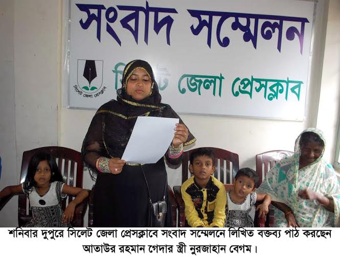 সংবাদ সম্মেলনে শাশুড়ি সূর্যবান বিবি, মেয়ে সাথী ও সাকিবা জান্নাত, ছেলে হাফিজুর রহমান স্বাধীন উপস্থিত ছিলেন।