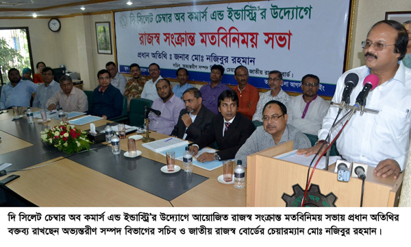 শনিবার দুপুরে সিলেট চেম্বার অব কমার্স এন্ড ইন্ডাস্ট্রির হলরুমে ‘রাজস্ব সংক্রান্ত মতবিনিময় সভা’ আয়োজন করা হয়। সভায় প্রধান অতিথির বক্তৃতায় এনবিআর চেয়ারম্যান বলেন, এটি রাজস্ব সংক্রান্ত মতবিনিময় হলেও প্রথম ‘রাজস্ব সংলাপ’। এই সংলাপ সারা দেশে ছড়িয়ে দেওয়া হবে। এতে লাভবান হবে দেশের জনগণ, বাড়বে রাজস্ব আদায়ের পরিমাণ। ফলে সরকার জনগণের জন্য বেশি বেশি সেবামূলক কাজ করতে পারবে।