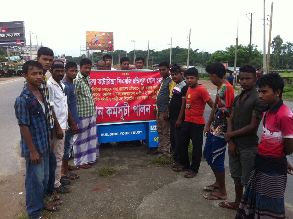 মহাসড়কে অটোরিকশা চলাচল বন্ধ ঘোষণার প্রতিবাদে সিলেটে সড়ক-মহাসড়কে অবস্থান কর্মসূচি ও ধর্মঘট পালন করছে জেলা অটোরিক্সা (সিএনজি) শ্রমিক ইউনিয়ন।