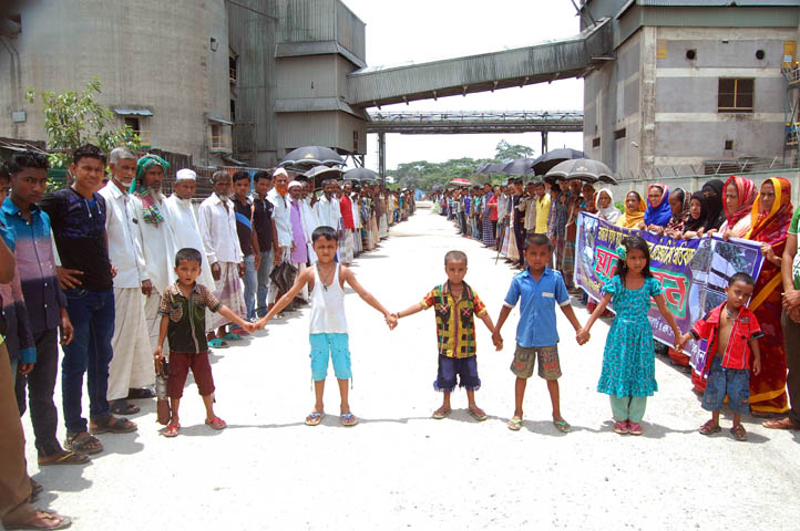 মানববন্ধনে এলাকাবাসী অভিযোগ করে বলেন, লাফার্জ কর্তৃপক্ষ কোম্পানীতে কর্মসংস্থান, ক্ষতিগ্রস্থ ভুমি মালিক ও স্থানীয়দের বিশেষ কৌঠায় যোগ্যতার ভিত্তিতে চাকুরি প্রদানের অগ্রাধিকার দেওয়া কথা ছিল। শিক্ষা স্বাস্থ্য ও পরিবেশের ভারসাম্য রক্ষায় প্রদক্ষেপেরও কথা ছিল। কিন্তু লাফার্জ কর্তৃপক্ষ সে প্রতিশ্রুতি রক্ষা করছে না। এলাকাবাসী প্রতিশ্রুতি মোতাবেক ক্ষতিগ্রস্থ পরিবার ও স্থানীয়দের স্থায়ী চাকুরি প্রদান, এলাকার মাটি, পানি ও বায়ু দূষন রোধ ও প্রশিক্ষন প্রাপ্তদের স্থায়ী চাকুরির দাবি বাস্তবায়ন না করলে আন্দোলন চলবে বলে ঘোষনা করেন।