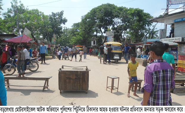 মৌলভীবাজারের বড়লেখায় মোটরসাইকেল আটকের ঘটনাকে কেন্দ্র করে এক ঠিকাদারকে মারধর করেছে পুলিশ। আহত এ ঠিকাদার হাসপাতালে চিকিৎসাধীন রয়েছেন। এ ঘটনার প্রতিবাদে স্থানীয় জনতা প্রায় ১ ঘন্টা সড়ক অবরোধ করে রাখে। তাৎক্ষণিকভাবে ২ পুলিশ সদস্য কনষ্টেবল মনির (৩৯৯) ও লতিফ (৪৭৪) কে ক্লোজড করার পর পরিস্থিতি শান্ত হয়।