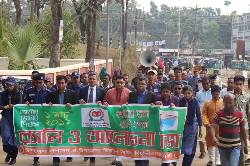 ‘ভোটার হব, ভোট দেব’ এ প্রতিপাদ্যকে সামনে রেখে বিয়ানীবাজারে জাতীয় ভোটার দিবস পালিত হয়েছে। দিবসটি উপলক্ষে উপজেলা প্রশাসন ও উপজেলা নির্বাচন অফিসের আয়োজনে শুক্রবার (১ মার্চ) সকালে র্যালি ও আলোচনা সভা অনুষ্ঠিত হয়।