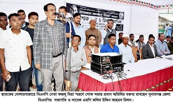 দোলারবাজার ইউনিয়ন বিএনপির সভাপতি ফয়জুর রহমানের সভাপতিত্বে এবং উপজেলা বিএনপি নেতা মতিউর রহমান রুয়েল ও ইউনিয়ন বিএনপির সাধারণ সম্পাদক আব্দুল মুমিনের যৌথ পরিচালনায় অনুষ্ঠিত শোক সভায় প্রধান অতিথির বক্তব্যে বিএনপির কেন্দ্রিয় সহ সাংগঠনিক সম্পাদক, সুনামগঞ্জ জেলা বিএনপির সভাপতি, সাবেক সংসদ সদস্য কলিম উদ্দিন আহমদ মিলন বলেন, ফজলু মিয়া ছিলেন একজন ভাল মনের মানুষ।