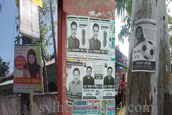 শ্রীমঙ্গল শহরের প্রাণকেন্দ্র নতুন বাজারের মুখে ফার্মেসির মালিক নান্টু রায় আক্ষেপ করে এ প্রতিবেদককে বলছিলেন, 'এতদিন দেখতাম পোস্টার সুতোয় বেঁধে ঝুলিয়ে দেয়া হতো কিন্তু এই (উপজেলা) নির্বাচনে দেখছি ভিন্ন চিত্র। আমার দোকানের আশেপাশের দেওয়ালগুলো একটাও খালি নেই সবগুলোতে পোস্টার লাগিয়ে ভরিয়ে ফেলেছেন প্রার্থীর কর্মী ও সমর্থকরা।'