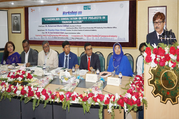 বাংলাদেশ সরকারের পাবলিক প্রাইভেট পার্টনারশিপ (পিপিপি) কর্তৃপক্ষ, বাংলাদেশ পর্যটন কর্পোরেশন ও দি সিলেট চেম্বার অব কমার্স এন্ড ইন্ডাস্ট্রি’র যৌথ উদ্যোগে আয়োজিত “স্টেকহোল্ডার কনসালটেশন ওয়ার্কশপ অন পিপিপি প্রজেক্ট্স ইন ট্যুরিজম সেক্টর” শীর্ষক এক কর্মশালা অনুষ্ঠিত হয়েছে।
