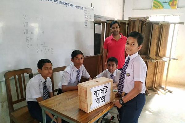 বৃহস্পতিবার উপজেলার ২৩ শিক্ষা প্রতিষ্ঠানে উৎসব আমেজে শিক্ষার্থীরা লাইনে দাঁড়িয়ে তাদের পছন্দের প্রার্থীকে ভোট দেয়।