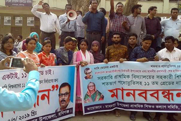 বৃহস্পতিবার (১৪ মার্চ) বিকেলে ঢাকা সিলেট মহাসড়কের উপজেলা পরিষদ গেইটের সামনে প্রায় ৫০০শত শিক্ষকের অংশগ্রহণে এই কর্মসূচি পালিত হয়।