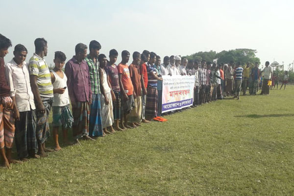 সুনামগঞ্জের তাহিরপুরে গো-চারন ভূমি ও ঈদগাহ মাঠ খাস ভূমি বন্দোবস্ত বাতিলের দাবিতে মানববন্ধন অনুষ্ঠিত হয়েছে।
