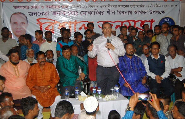 বিশ্বনাথ-রশিদপুর সড়কের চৌধুরী ম্যনশনের সামনে বিশ্বনাথ উপজেলাবাসীর ব্যানারে অনুষ্ঠিত জনসভায় প্রধান অতিথির বক্তব্যে তিনি বলেন, বিশ্বনাথ-ওসমানীগরবাসী যেহেতু তাকে সংসদে দেখতে যাচ্ছেন, তাই জনগনের অনুরোধে আমি শপথ নেবো। আর শপথ নেওয়ার পর সংসদে গিয়ে নির্বাচনী ইশতেহার মতে বিএনপি চেয়ারপার্সন বেগম খালেদা জিয়ার মুক্তি ও নিখোঁজ বিএনপি নেতা এম ইলিয়াস আলীর সন্ধানে তদন্ত কমিটি গঠনের দাবী সংসদে উত্তাপন করবো। পাশাপাশি এম ইলিয়াস আলীর ন্যায় বিশ্বনাথ-ওসমানীনগরের বাসিন্দাদের কাংখিত উন্নয়ন তরান্নিত করারও চেষ্টা করব।