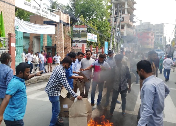 রোববার বেলা দুইটার দিকে নগরীর লামাবাজার এলাকায় সড়কে টায়ার পুড়িয়ে বিক্ষোভ শুরু করেন মদনমোহন কলেজের শিক্ষার্থীরা। প্রায় ঘন্টাখানেক চলা বিক্ষোভে রাস্তায় উভয় পাশে যানচলাচল বন্ধ হয়ে যায়। ফলে দীর্ঘ যানজটের সৃষ্টি হয়।