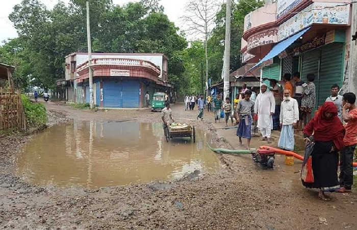 অনেকদিন ধরেই সড়কে গর্ত হয়ে আছে। বৃষ্টি দিলেই এতে পানি জমে যায়। ফলে এলাকার গুরুত্বপূর্ণ এই সড়কে যান চলাচল ব্যাহত হয়। প্রতিদিন শিক্ষার্থীসহ হাজারো মানুষ এই সড়ক দিয়ে চলাচল করেন। নিরুপায় হয়ে স্থানীয় লোকজন মঙ্গলবার (৯ এপ্রিল) সকালে মেশিন লাগিয়ে গর্তের পানি নিষ্কাশন করেন।