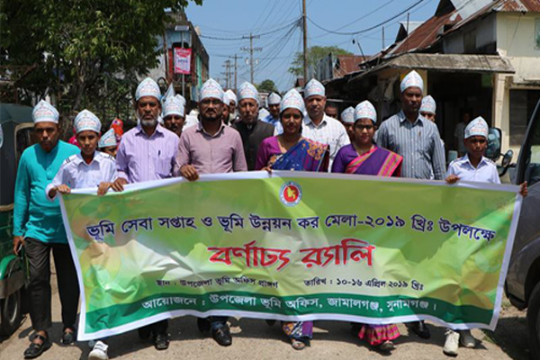 সুনামগঞ্জের জামালগঞ্জ উপজেলায় ভূমি সেবা সপ্তাহ ও ভূমি উন্নয়ন কর মেলা উপলক্ষে বণার্ঢ্য র্যালির আয়োজন করা হয়।