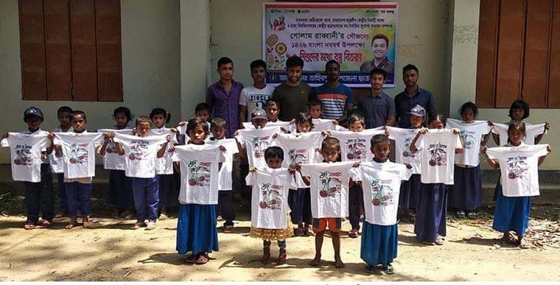 তাহিরপুরে বাংলা নববর্ষ উপলক্ষে হাওরপাড়ের শিশুদের মাঝে নতুন বস্ত্র বিতরণ করেছে তাহিরপুর উপজেলা ছাত্রলীগ।
