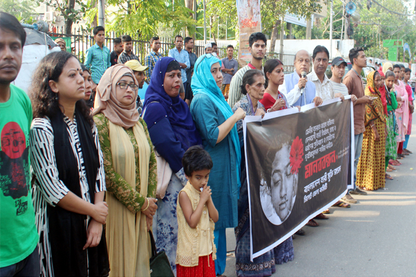 মানববন্ধনে বাংলাদেশ ওয়াকার্স পার্টির কেন্দ্রীয় কমিটির সদস্য কমরেড সিকান্দার আলী বলেন, ফেনীর ছাত্রী নুসরাত হত্যার প্রধান আসামী সিরাজ-উদ-দৌলাসহ জড়িতদের কঠোর শাস্তি দিয়ে দৃষ্টান্ত স্থাপন করতে হবে। যাতে ভবিষ্যতে এই ধরণের ঘটনা আর না ঘটে। এই হত্যাকারী অপরাধীরা কোনোভাবেই পার পেতে পারে না।’ তিনি অবিলম্বে নারী নির্যাতন ও যৌন নিপীড়কদের বিশেষ ট্রাইব্যুানালের মাধ্যমে বিচারাধীন প্রক্রিয়া সম্পন্ন করার বিশেষ আহŸান জানান।