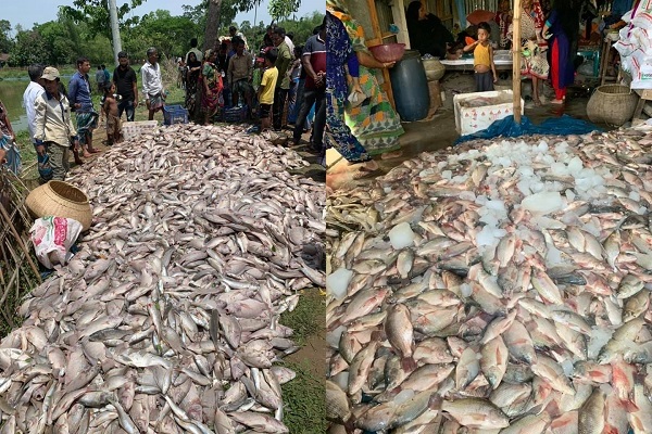 মৎস্য খামারি উপজেলার পূর্ব সায়পুর গ্রামের ইয়াসিন আলী বলেন, নান্দুয়া গ্রামের আহমদ হাসান জুয়েলের কাছ থেকে ৩ বছরের জন্য গত ৬/৭ মাস আগে তিনি দিঘীটি লিজ নিয়ে মাছ চাষ করে আসছেন। গত রোববার রাত সাড়ে ৯টার দিকে তিনি খবর পান যে, দিঘীতে মাছ মরে ভেসে উঠছে। দ্রুত ঘটনাস্থলে গিয়ে দেখেন দিঘীর তেলাপিয়া, রুই, কাতলাসহ দেশীয় প্রজাতির বিভিন্ন মাছ মরে যাচ্ছে।
