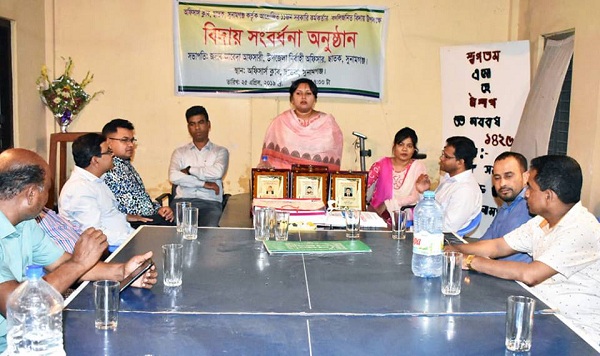 বৃহস্পতিবার (২৫এপ্রিল) রাতে উপজেলা নির্বাহী কর্মকর্তা আবেদা আফসারীর সভাপতিত্বে অফিসার্স ক্লাবে বিদায়ী কর্মকর্তা সহকারী কমিশনার(ভূমি) সোনিয়া সুলতানা, অতিরিক্ত পুলিশ সুপার ছাতক সার্কেল দুলন মিয়া, উপজেলা মৎস্য কর্মকর্তা ড. খালেদ কনক, কৃষি কর্মকর্তা কেএম বদরুল হক, কৃষি সম্প্রসারন কর্মকর্তা শাখাওয়াত হোসেন, নির্বাচন কর্মকর্তা মোজ্জাম্মেল হক, পরিসংখ্যান কর্মকর্তা মনিরুজ্জামান খান, জনস্বাস্থ্য প্রকৌশলী আজমল হোসেন, সমাজসেবা কর্মকর্তা আনিছুর রহমান খান, সমবায় কর্মকর্তা বিজিত রঞ্জন কর, পল্লী উন্নয়ন কর্মকর্তা মোশারফ হোসেনকে এ বিদায় সংবর্ধনা প্রদান করা হয়।