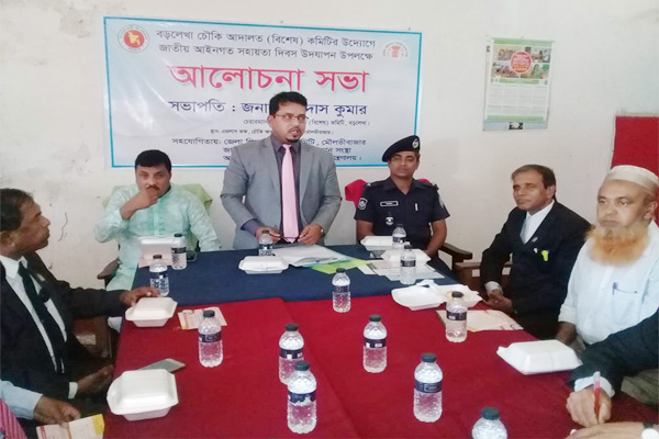 জাতীয় আইনগত সহায়তা দিবস উদযাপন উপলক্ষে মৌলভীবাজারের বড়লেখায় চৌকি আদালত (বিশেষ) কমিটির উদ্যোগে আলোচনা সভা অনুষ্ঠিত হয়েছে।