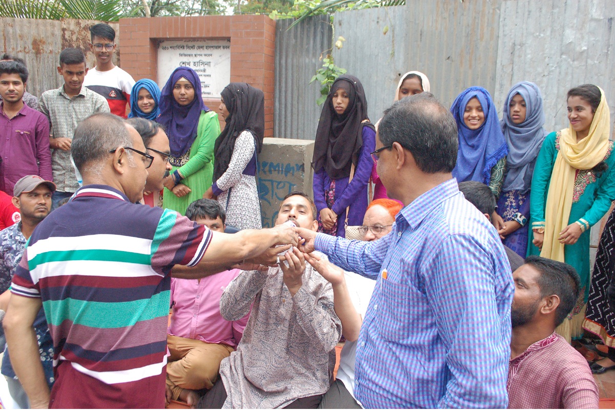 মঙ্গলবার সকালে ওই দাবিতে আবু সিনা ছাত্রাবাসের সামনে প্রতীকী গণ অনশন পালন করে এই সগঠনটি। পরে সিলেটের দুই সাংবাদিক নেতা আল আজাদ ও ইকরামুল কবির শরবত পান করিয়ে তাদের গণঅনশন ভা্ঙ্গান।