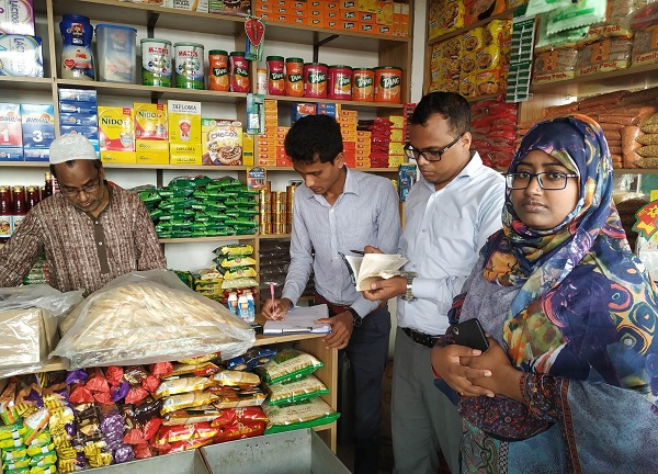 অভিযান চলাকালে একতা স্টোরে মেয়াদ উর্ত্তীণ পণ্য পাওয়ায় দুই হাজার টাকা জরিমানা করা হয় এবং সর্তক করা হয়।