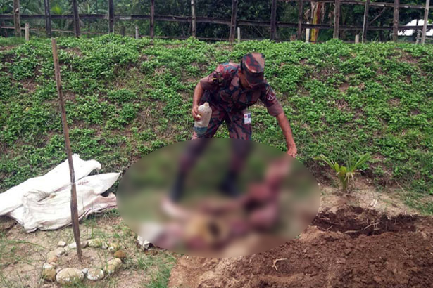 জব্দকৃত চোরাই গরুর মাংস স্থানীয় চেয়ারম্যান, মেম্বার ও গণ্যমান্য ব্যক্তিবর্গের উপস্থিতিতে দুর্গন্ধরোধে কেরোসিন ঢেলে মাটি চাপা দেয়া হয়।