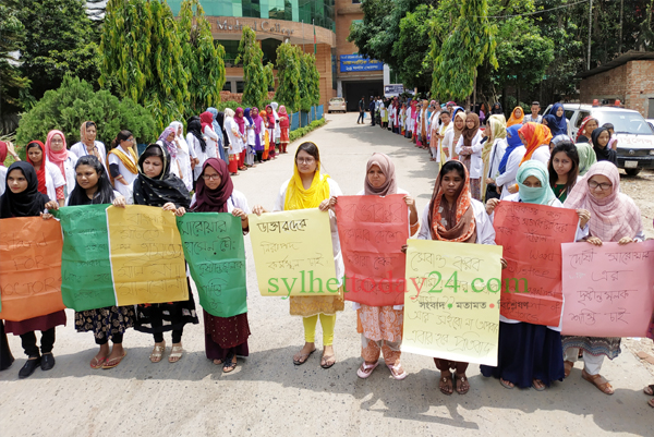 উইমেন্স ও রাগীব রাবেয়া মেডিকেল কলেজের কয়েকজন ইন্টার্ন ডাক্তারের সাথে কথা বলে জানা যায়, ছাত্রলীগ নেতা কর্তৃক সিলেট ওইমেন্স মেডিকেল কলেজের ইন্টার্ন ডাক্তারকে ধর্ষণ করার হুমকি ও অসদাচরণ করার প্রতিবাদে সকাল থেকে নিজ নিজ কর্মক্ষেত্রে কর্মবিরতি পালন করছেন সিলেটের সকল মেডিকেল কলেজের ইন্টার্ন ডাক্তাররা। প্রতিটি কলেজের কিছু ইন্টার্ন ডাক্তার উইমেন্স মেডিকেল কলেজে এসে তাদের এই প্রতিবাদে সংহতি প্রকাশ করছেন। বর্তমানে ওমেন্স মেডিকেল কলেজে সকল মেডিকেল কলেজের ইন্টার্ন ডাক্তারদের প্রতিনিধিরা মিলে সভা করছেন। সভা শেষে পরবর্তী কর্মসূচী জানানো হবে।