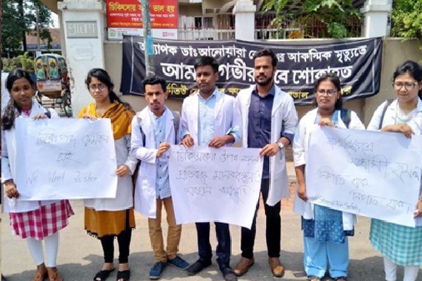 শনিবার দুপুর ১২টায় কলেজ প্রাঙ্গনে ইন্টার্ন চিকিৎসক ও ছাত্রছাত্রীবৃন্দ ঝড়ো হন। এরপর কলেজের সামনে রাস্তায় দাড়িয়ে তারা মানববন্ধন কর্মসুচী পালন করেন।