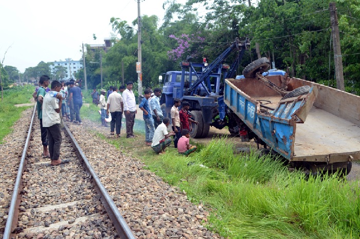 জানা যায়, দুর্ঘটনা কবলিত ট্রাকটি সিসিকের আবর্জনা ফেলার কাজে নিয়োজিত ছিল। রোববার ট্রাকটি শিববাড়ি এলাকার একটি ডোবায় মাটি ফেলে রেল লাইন অতিক্রম করছিলো। এসময় ঢাকা থেকে ছেড়ে আসা সুরমা মেইল ট্রেন ওই রেলক্রসিং অতিক্রম করছিলো। এতে ট্রেনের সাথে ধাক্কা লেগে ট্রাকটি পাশের খাদে ছিটকে পড়ে। এতে ট্রাকটি ক্ষতিগ্রস্ত হয় ও চালক আহত হন।
