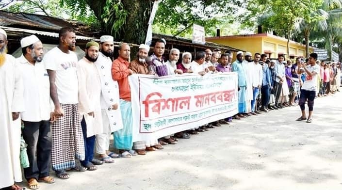 বিকেল ২টা থেকে ৩টা পর্যন্ত ছাতক-জাউয়া সড়কের চরচৌরাই পয়েন্টে এ মানববন্ধন অনুষ্ঠিত হয়। ইউনিয়ন আ’লীগের সভাপতি মতিউর রহমানের সভাপতিত্বে ও মাষ্টার কবিরুল ইসলাম এবং ছাত্রনেতা রুয়েল আহমদ তালুকদার’র যৌথ পরিচালনায় মানববন্ধন চলাকালে অনুষ্ঠিত প্রতিবাদ সভায় বক্তব্য রাখেন, সাবেক চেয়ারম্যান মুক্তিযোদ্ধা কদর মিয়া, ইউপি সদস্য হুশিয়ার আলী, আলী আহমদ, আ’লীগনেতা আব্দুল হাই, হাজী জমিরুল ইসলাম, সমুজ আলী, কালা মিয়া, ব্যবসায়ী সুনা মিয়া, সাইদুল হক সবজিল, ইউনিয়ন আওয়ামীলীগ নেতা মতিউর রহমান, আলহাজ্ব জসিম তালুকদার, আকল আলী, সাবেক মেম্বার আজিজুর রহমান, হান্নান মিয়া, দুদু মিয়া, আশুক মিয়া, ময়নুল হক ময়না, আব্দুল হামিদ, ব্যবসায়ী জয়নুল আবেদীন, ফারুক মিয়া, আজাদ মিয়া, মুহিবুর রহমান গেদা, ইলিয়াছ আহমদ, আব্দুল করিম, আব্দুল মালিক, লাল মিয়া, শিক্ষক আমির আলী, ব্যবসায়ী শাহ জাহান হক, ইউনিয়ন যুবলীগের আহবায়ক লাল মিয়া, যুবলীগ নেতা আবুল হাসনাত, উমর আলী, আমির হোসেন আলী, ইউনিয়ন ছাত্রলীগের সভাপতি ইব্রাহিম আলী, ছাত্রলীগনেতা নাজমুল ইসলাম,আফজাল, মাসুক, জাহেদ, সাদিক, মাহবুব প্রমুখ।