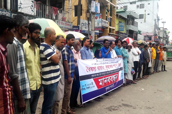কৃষক সংহতির নেতা শামস শামীমের সঞ্চালনায় মানববন্ধনে বক্তব্য দেন, সিনিয়র আইনজীবী লেখক হোসেন তওফিক চৌধুরী, লেখক সুখেন্দু সেন হারু, মুক্তিযোদ্ধা মালেক হুসেন পীর, অ্যাডভোকেট রুহুল তুহিন, জেলা সিপিবির সাধারণ সম্পাদক অ্যাড. এনাম আহমেদ, সাবেক ইউপি চেয়ারম্যান সাহাব উদ্দিন, জেলা কৃষক লীগের সদস্যসচিব বিন্দু তালুকদার, জেলা উদীচীর সাধারণ সম্পাদক জাহাঙ্গীর আলম, সাবেক ছাত্রনেতা আশরাফ হোসেন লিটন, ছাত্র নেতা আসাদ মনি প্রমুখ।