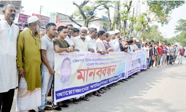 সড়ক অবরোধ শেষে সমাবেশে এলাকার লোকজন দাবি করেন, খাদিমপাড়া ইউনিয়নের সালিশ ব্যক্তিত্ব আজমল আলী নেপুর মিয়া। সম্প্রতি নেপুরের ভাতিজির পক্ষ নিয়ে ওসি আক্তার হোসেন মামলা দায়ের করে তাকে কারান্তরীণ করেছেন।